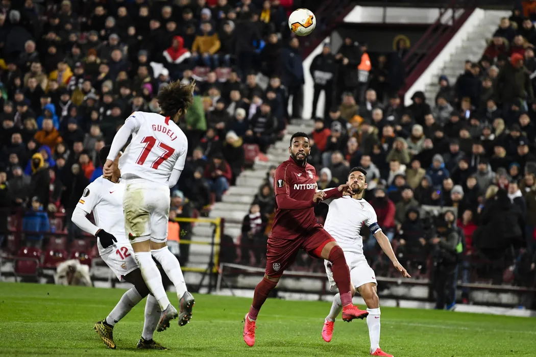 Billel Omrani (C) in meciul de fotbal dintre CFR Cluj si Sevilla din 16-imile Europa League, manșa tur, disputat pe stadionul Dr. Constantin Radulescu din Cluj-Napoca, joi, 20 februarie 2020. © FOTO:Flaviu Buboi / Sport Pictures