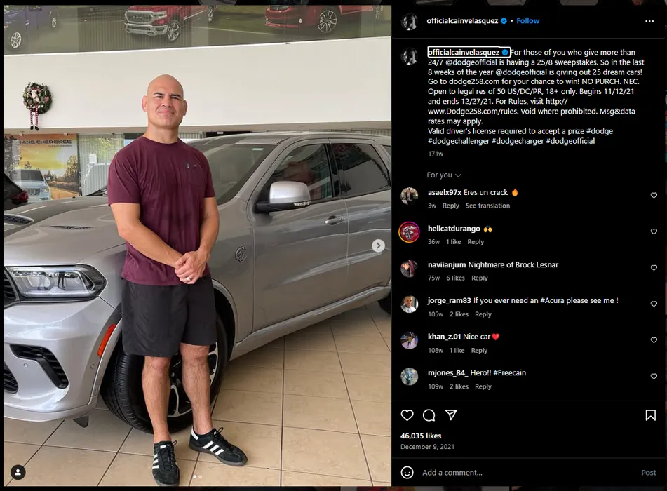Foto: Instagram / @officialcainvelasquez