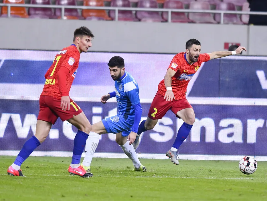 Lucian Iulian Cristea, Florin Vasile Achim si Valentin Cretu in meciul de fotbal dintre FCSB si Academica Clinceni, contand pentru Liga 1 Casa Pariurilor, disputat pe Arena Nationala din Bucuresti, luni 10 februarie 2019. © FOTO:Razvan Pasarica/SPORT PICTURES