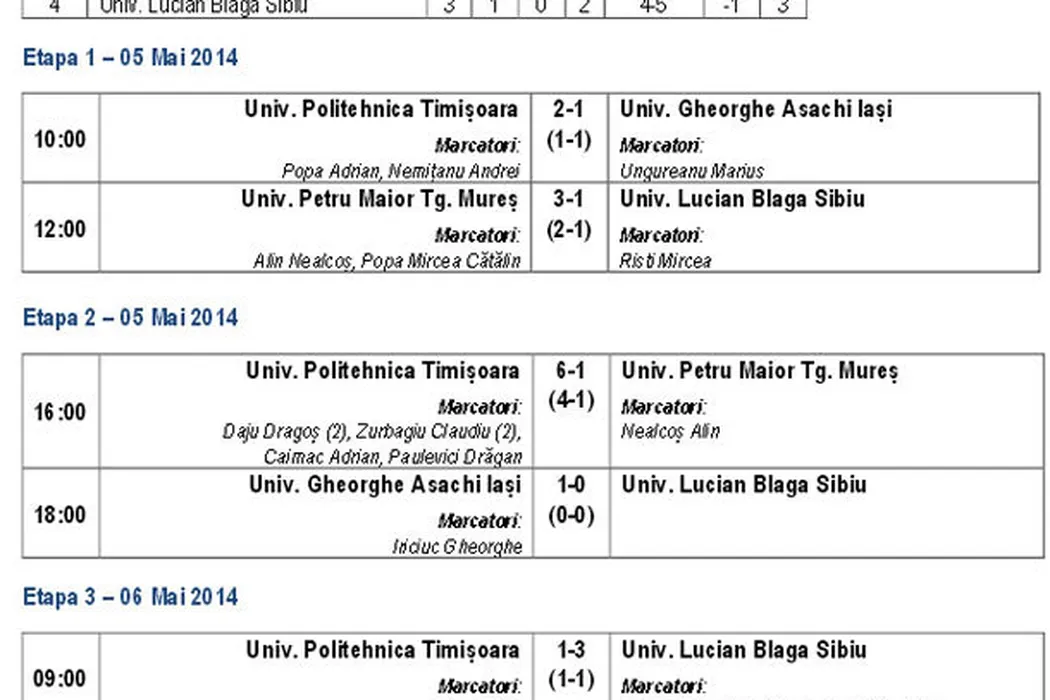 Programul și rezultatele turneului final al Campionatului Universitar de Minifotbal