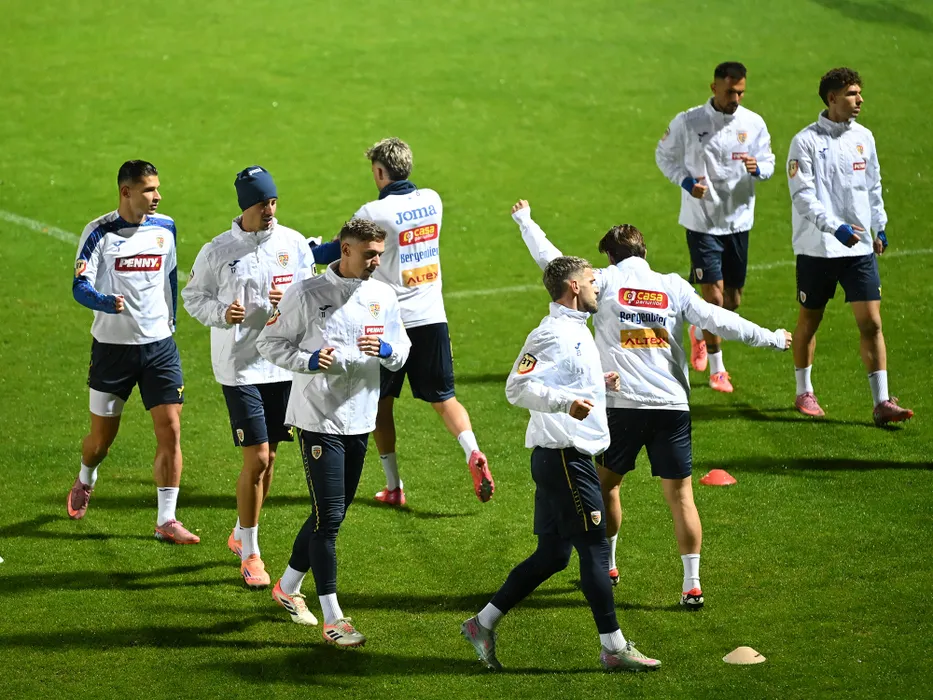 Fotbalistii romani Alexandru Dobre, David Miculescu, Louis Munteanu si Vlad Dragomir la antrenamentul oficial de dinaintea meciului amical impotriva Moldovei, desfasurat la Centrul National de Fotbal de la Mogosoaia, miercuri 8 octombrie 2025. © FOTO:Razvan Pasarica/SPORT PICTURES