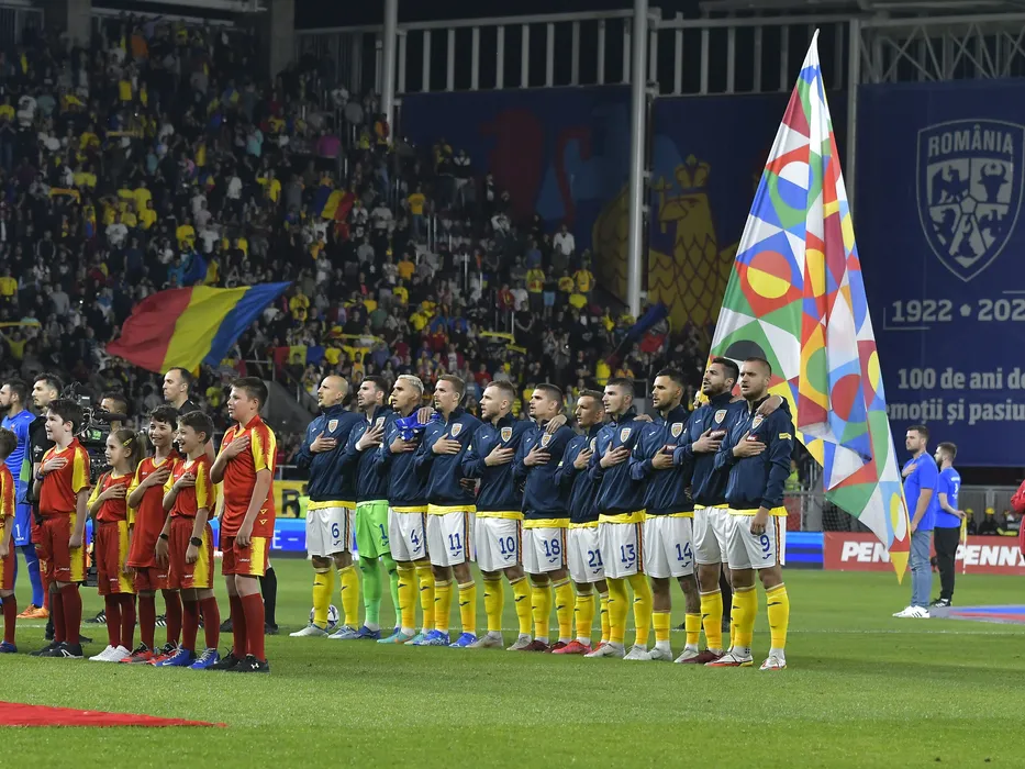 Fotbalistii romani la startul meciului de fotbal dintre Romania si Muntenegru, contand pentru Liga Natiunilor, desfasurat pe Stadionul Rapid Giulesti din Bucuresti, marti 14 iunie 2022. © FOTO:Razvan Pasarica/SPORT PICTURES