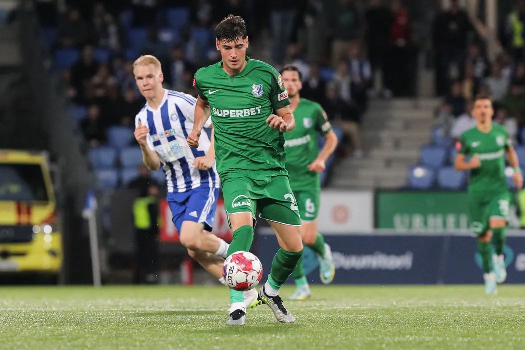 Adrian Mazilu in meciul de fotbal dintre HJK Helsinki si Farul Constanta, contand pentru UEFA Europa Conference League, desfasurat pe Helsinki Football Stadium din Helsinki, joi 31 august 2023. © FOTO:Antonio Vasile/SPORT PICTURES
