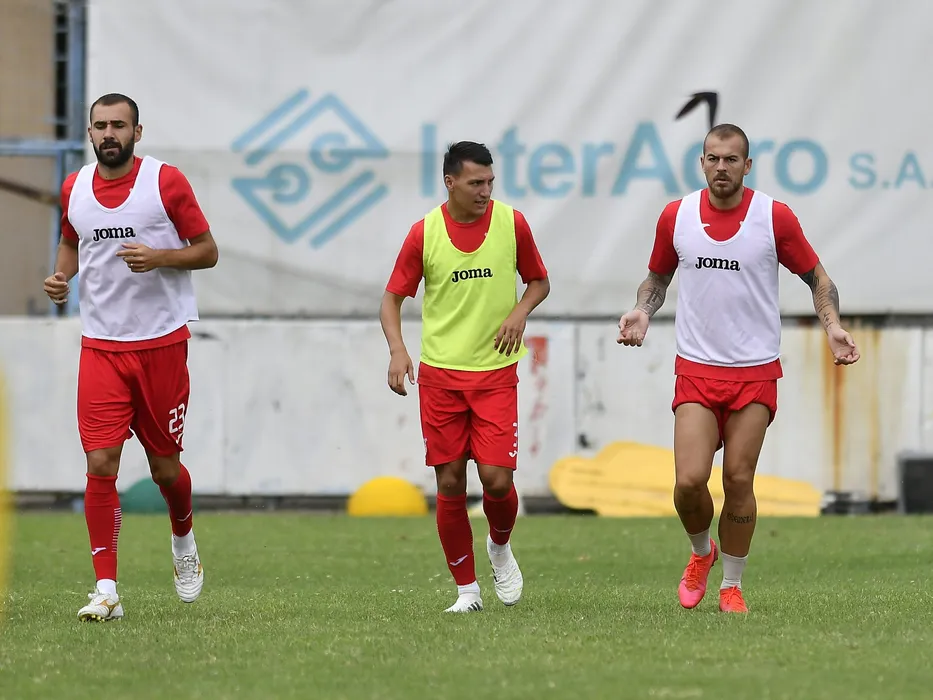 Fotbalistii Astrei Giurgiu Alexandru Dandea, Risto Radunovic si Denis Alibec se antreneaza inaintea inceperii unei noi editii a Ligii 1 Casa Pariurilor pe Stadionul Astra din Ploiesti, joi 20 august 2020. © FOTO:Razvan Pasarica/SPORT PICTURES
