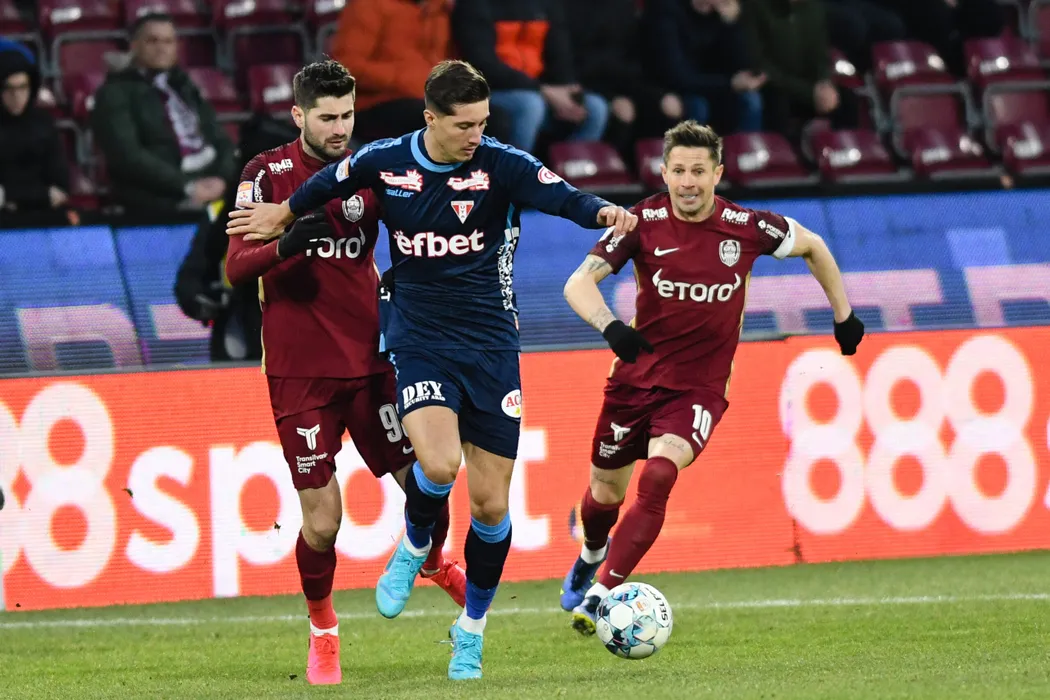 David Miculescu (S), de la UTA Arad suteaza in timpul meciului de fotbal contra echipei CFR Cluj din etapa a XXV- a a Ligii 1, disputat pe stadionul Dr. Constantin Radulescu din Cluj-Napoca, marti, 8 februarie 2022. FLAVIU BUBOI / MEDIAFAX FOTO