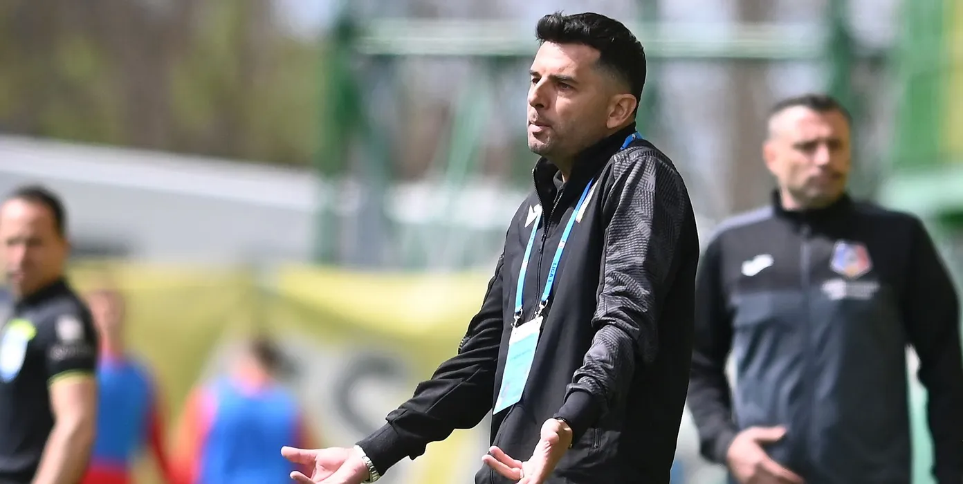 Nicolae Dica reactioneaza in meciul de fotbal dintre CS Mioveni si FC Hermannstadt, contand pentru Play-out-ul Superligii Superbet, desfasurat pe Stadionul Orasenesc din Mioveni, sambata 15 aprilie 2023. © FOTO:Razvan Pasarica/SPORT PICTURES