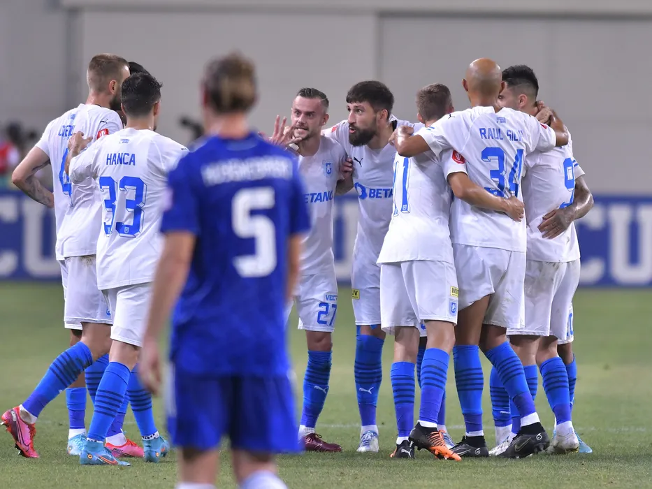 Bucurie a fotbalistilor craioveni dupa un gol marcat cu Ivan Martic si Paul Papp in meciul de fotbal dintre FC U Craiova si Universitatea Craiova, contand pentru Superliga Superbet, desfasurat pe Stadionul Ion Oblemenco din Craiova, duminica 7 august 2022. © FOTO:Razvan Pasarica/SPORT PICTURES