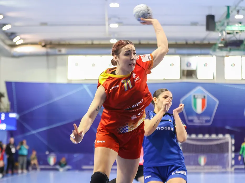 Alicia-Maria Gogirla in meciul de handbal dintre Italia si Romania, ccontand pentru calificarea la Campionatul Modial de handbal feminin din 2025, desfasurat in Pala Santa Filomena din Chieti, miercuri 9 aprilie 2025. © FOTO: Sorin Pana/SPORT PICTURES