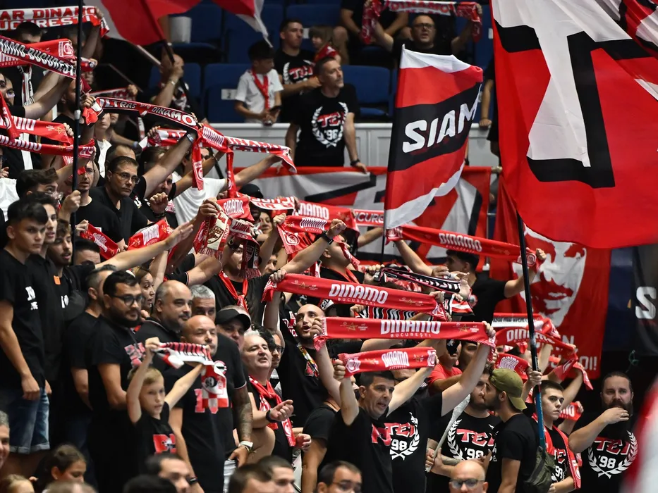 Galeria dinamovista cu steaguri si fulare isi incurajeaza favoritii la meciul de handbal masculin dintre Dinamo Bucuresti si Fredericia Handbold Klub, din cadrul EHF Champions League, desfasurat in Sala Polivalenta-Ioan Kunst Ghermanescu din Bucuresti, joi 12 septembrie 2024. Bucuresti *** Dinamo gallery with flags and scarves cheering their favorites at the mens handball match between Dinamo Bucharest and Fredericia Handbold Klub in the EHF Champions League, held in the Ioan Kunst Ghermanescu Polivalenta Hall in Bucharest, Thursday, September 12, 2024 Bucharest Copyright: xRazvanxPasarica/SPORTxPICTURESx,Image: 907074895, License: Rights-managed, Restrictions: , Model Release: no