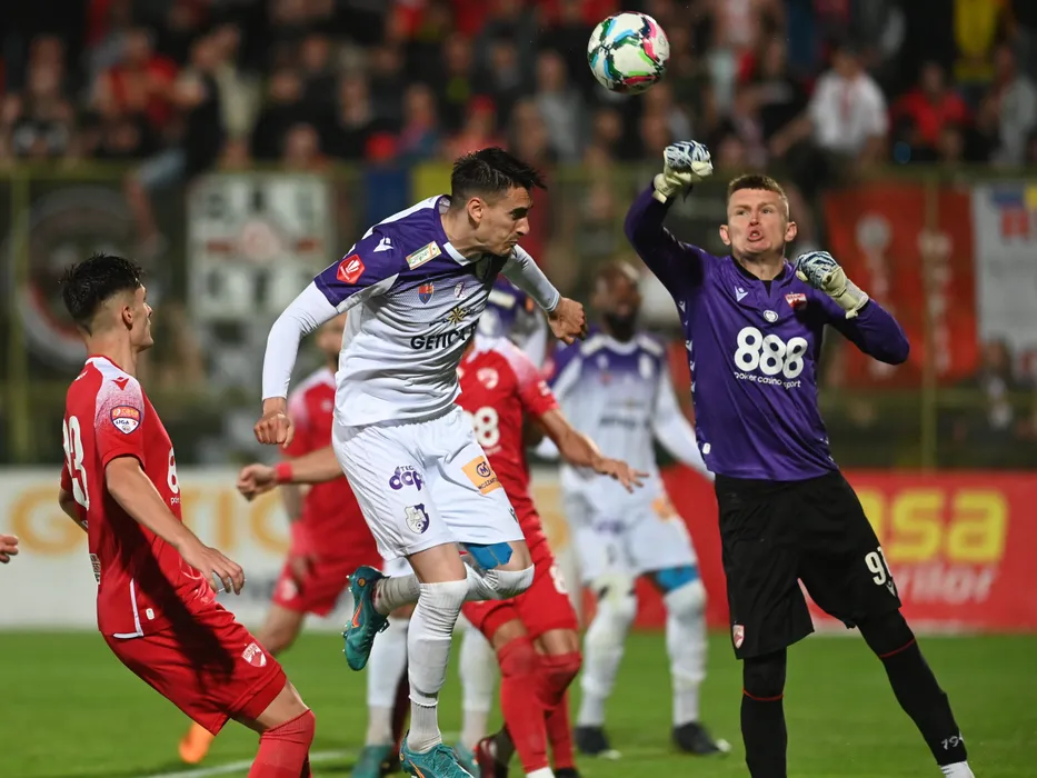 Alexandru Pop, Mario Zebic si Filip Dujmovic in meciul de fotbal dintre FC Arges si Dinamo Bucuresti, contand pentru mansa retur a Barajului pentru mentinerea in Superliga Superbet, desfasurat pe Stadionul Orasenesc din Mioveni, sambata 3 iunie 2023. © FOTO:Razvan Pasarica/SPORT PICTURES