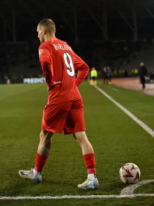 George Daniel Bîrligea in meciul de fotbal dintre Qarabag si FCSB, din cadrul UEFA Europa League, desfasurat pe Stadionul Republican Tofiq Bahramov din Baku, joi 23 ianuarie 2025. © FOTO:Razvan Pasarica/SPORT PICTURES