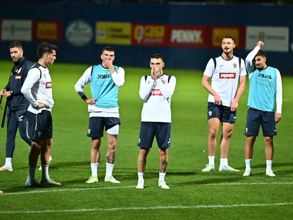 Fotbalistii romani Ianis Hagi, Valentin Mihăilă, Nicolae Stanciu, Radu Drăgușin si Răzvan Marin la un antrenament efectuat inaintea meciurilor impotriva Ciprului si Lituaniei, din cadrul UEFA Nations League, desfasurat la Centrul National de Fotbal de la Mogosoaia, luni 7 octombrie 2024. © FOTO:Razvan Pasarica/SPORT PICTURES