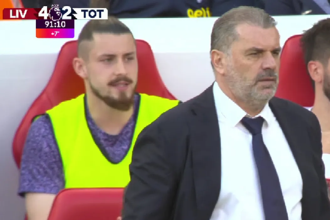 Radu Drăgușin nu s-a mai putut stăpâni pe banca de rezerve și camerele TV l-au surprins, în Liverpool – Tottenham 4-2, când nu se aștepta să fie filmat! Românul deja nu se mai ascunde