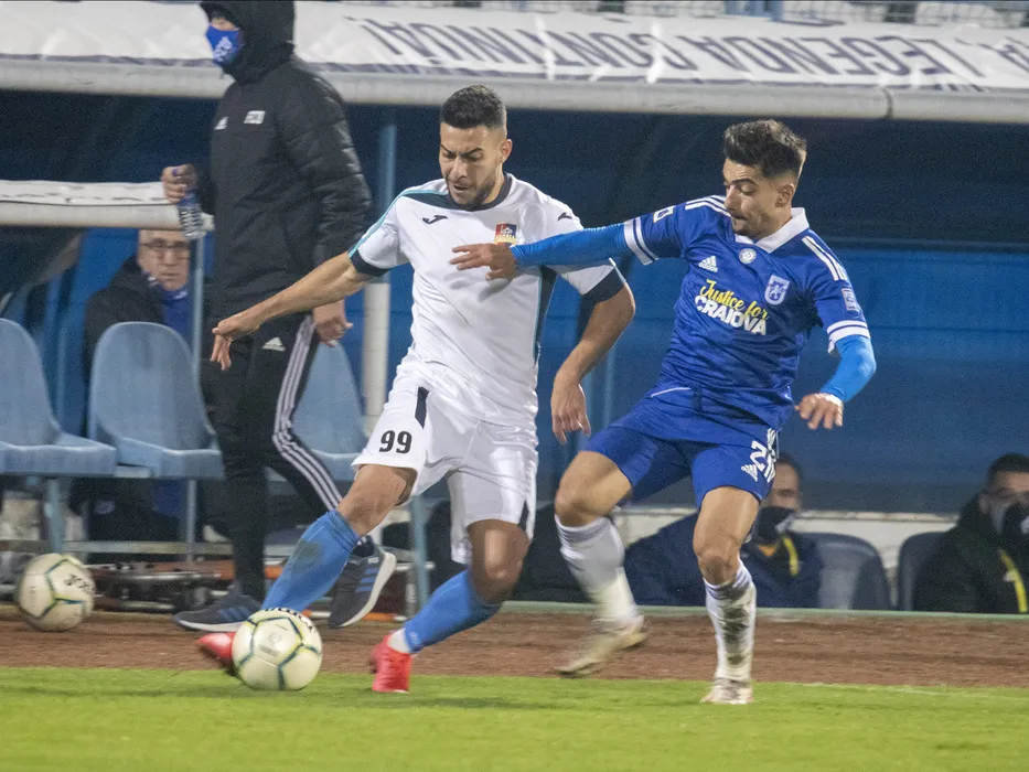 Gabriel Nedelea si Radu Negru in meciul de fotbal dintre FC U Craiova si Gloria Buzau, contand pentru Liga a-2-a Casa Pariurilor, desfasurat fara spectatori pe Stadionul Municipal din Drobeta Turnu Severin, duminica 15 noiembrie 2020. © FOTO:Catalin Ciupureanu/SPORT PICTURES