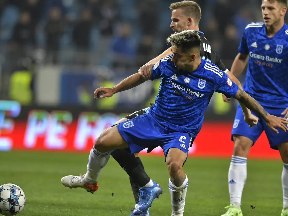 Radu Alexandru Negru si Nicusor Silviu Bancu in meciul de fotbal dintre FC U Craiova si Universitatea Craiova, contand pentru Liga 1 Casa Pariurilor, desfasurat pe Stadionul Ion Oblemenco din Craiova, duminica 3 octombrie 2021. © FOTO:Razvan Pasarica/SPORT PICTURES