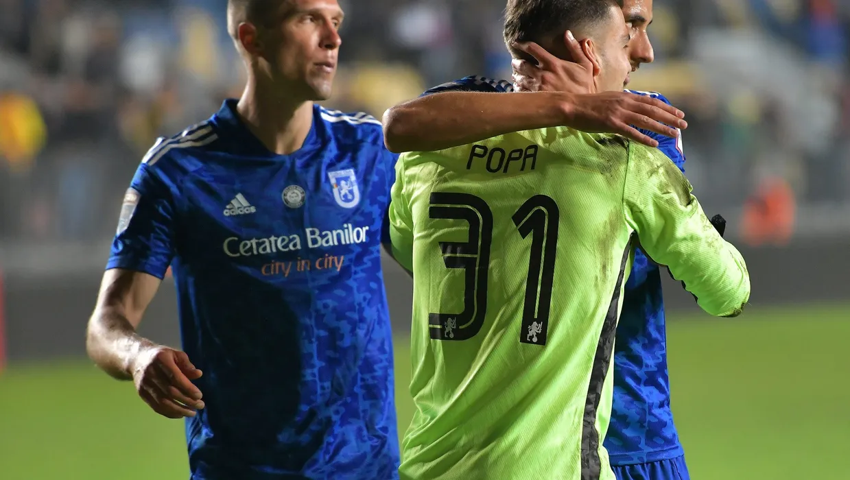 Claudiu Cristian Balan il felicita pe Dimitrie Robert Popa dupa meciul de fotbal dintre Petrolul Ploiesti si FC U Craiova, contand pentru Cupa Romaniei, desfasurat pe Stadionul Ilie Oana din Ploiesti, marti 21 septembrie 2021. © FOTO:Razvan Pasarica/SPORT PICTURES