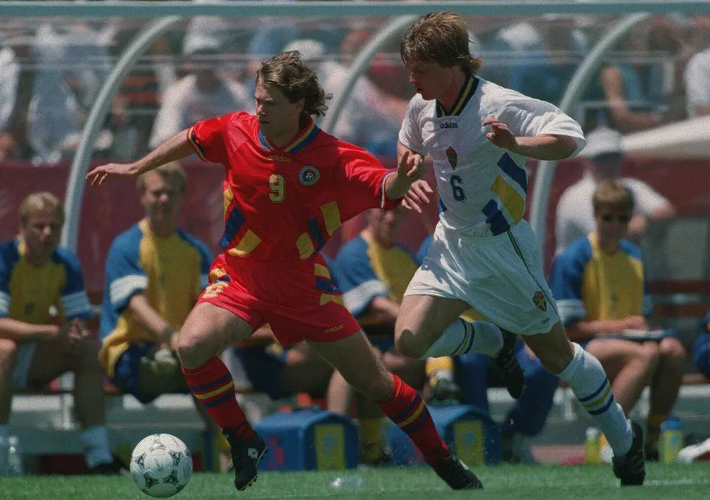 Florin Răducioiu, în timpul celebrului meci cu Suedia din 1994. Foto: Profimedia Images (10.07.2025)