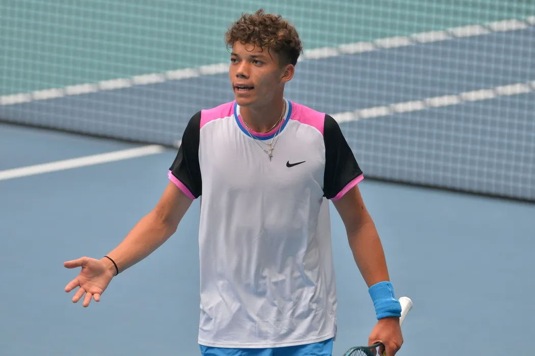 Darwin Blanch (USA) vs Tomas Machac (Czech Republic) during the 2024 Miami Open presented by Itaú Men's singles match at Hard Rock Stadium in Miami Gardens, Florida.