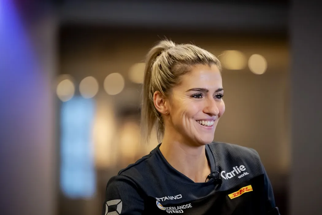 2022-09-27 14:10:27 ARNHEM - Handball player Estavana Polman during a press moment at Papendal. The Handball ladies of TeamNL are looking ahead to the first series of matches in the Golden League. ANP ROBIN VAN LONKHUIJSEN netherlands out - belgium out,Image: 726446177, License: Rights-managed, Restrictions: Belgium OUT, France OUT, Germany OUT, The Netherlands OUT, The UK OUT, Model Release: no