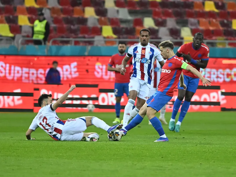 Virgil Andrei Ciobanu si Darius Dumitru Olaru in meciul dintre FCSB si Otelul Galati, contand pentru Play out-ul Superligii Superbet, desfasurat pe Arena Nationala din Bucuresti, sambata 11 aprilie 2026. © FOTO:Razvan Pasarica/SPORT PICTURES