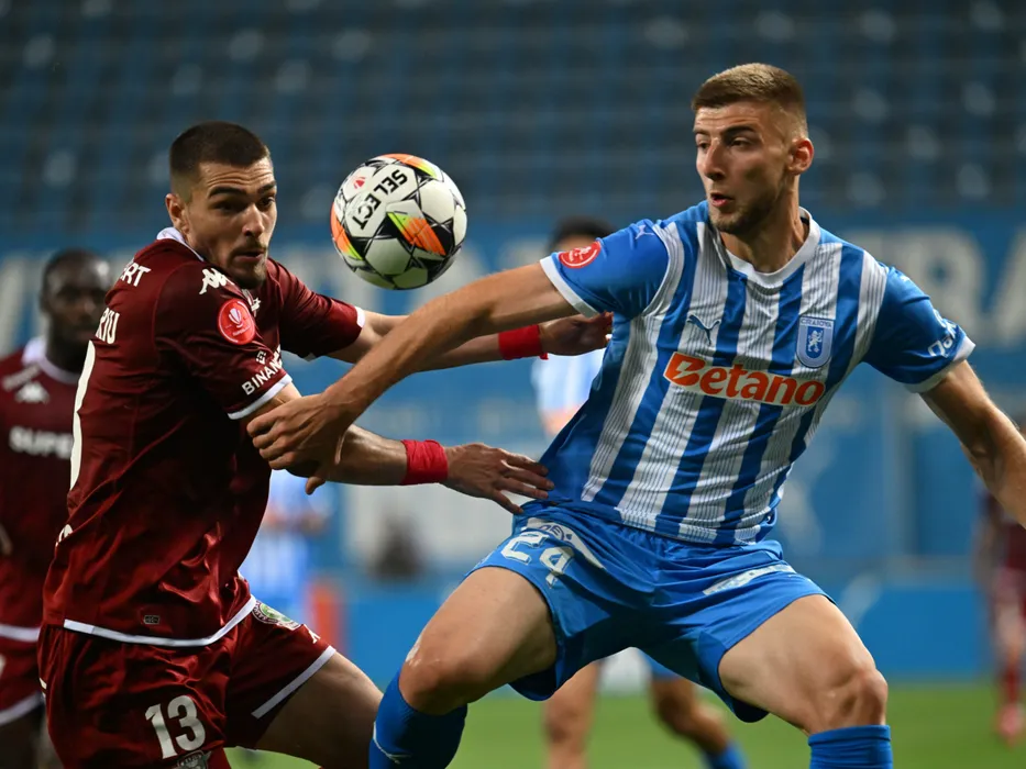 Denis Ciobotariu si Jovo Lukic in meciul dintre Universitatea Craiova si Rapid Bucuresti, contand pentru Play off-ul Superligii Superbet, desfasurat pe Stadionul Ion Oblemenco din Craiova, vineri 2 mai 2025. © FOTO:Razvan Pasarica/SPORT PICTURES