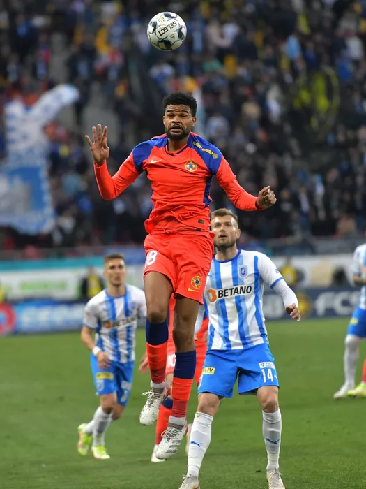 Sylas Laouari Edjouma Malcom si Alexandru Cretu in meciul de fotbal dintre FCSB si Universitatea Craiova, contand pentru Play-off-ul Ligii 1 Casa Pariurilor, desfasurat pe Arena Nationala din Bucuresti, duminica 3 aprilie 2022. © FOTO:Razvan Pasarica/SPORT PICTURES