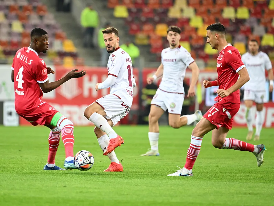 Kennedy Kofi Boateng, Jakub Hromada si Georgi Milanov Ventsislavov in meciul de fotbal dintre Dinamo Bucuresti si Rapid Bucuresti, contand pentru Play off-ul Superligii Superbet, desfasurat pe Arena Nationala din Bucuresti, luni 12 mai 2025. © FOTO:Razvan Pasarica/SPORT PICTURES