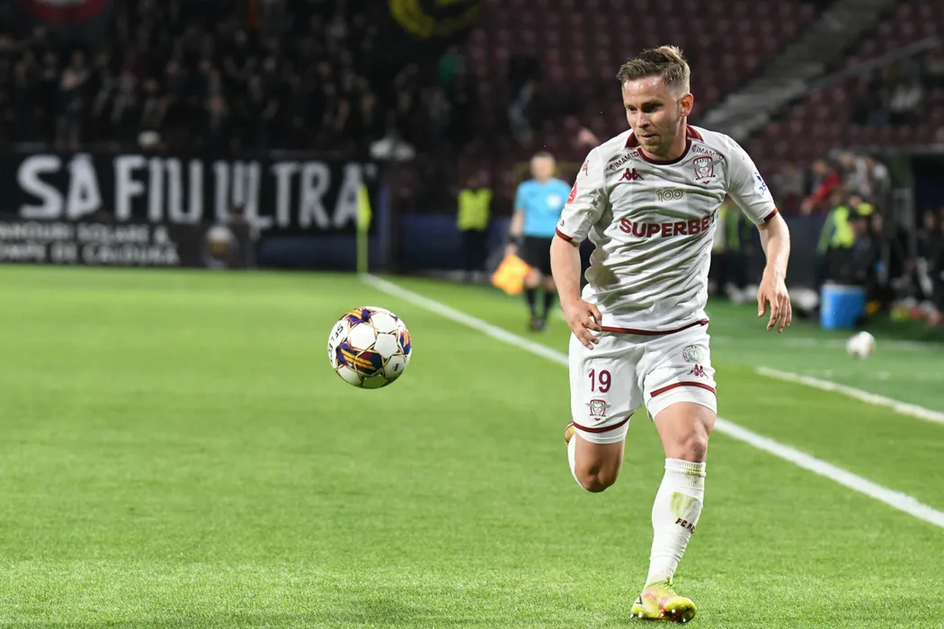Phillipe Răzvan Onea în meciul de fotbal dintre FC CFR 1907 Cluj si FC Rapid 1923 București, contând pentru Superliga Superbet Play-Off, desfășurat pe Stadionul Dr.Constantin Rădulescu din Cluj-Napoca, duminică 5 mai 2024. © FOTO: Flaviu BUBOI/SPORT PICTURES