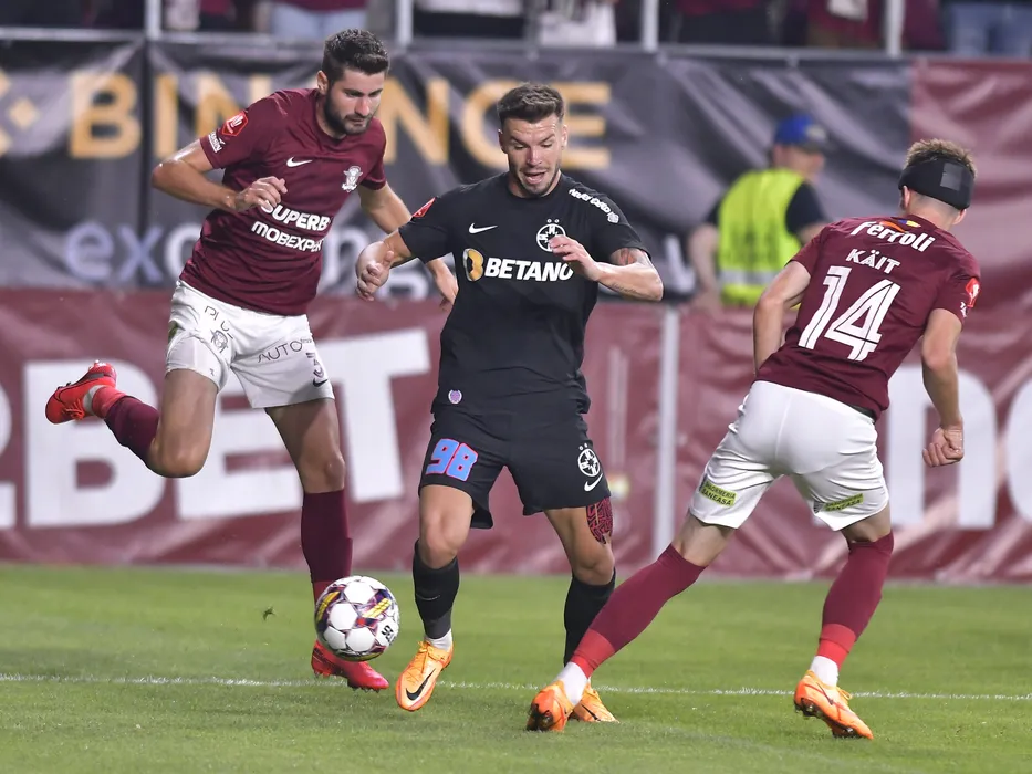 Florin Bogdan Stefan si Andrei Ioan Cordea in meciul de fotbal dintre Rapid Bucuresti si FCSB, contand pentru Superliga Superbet, desfasurat pe Stadionul Rapid Giulesti din Bucuresti, duminica 24 iulie 2022. © FOTO:Razvan Pasarica/SPORT PICTURES