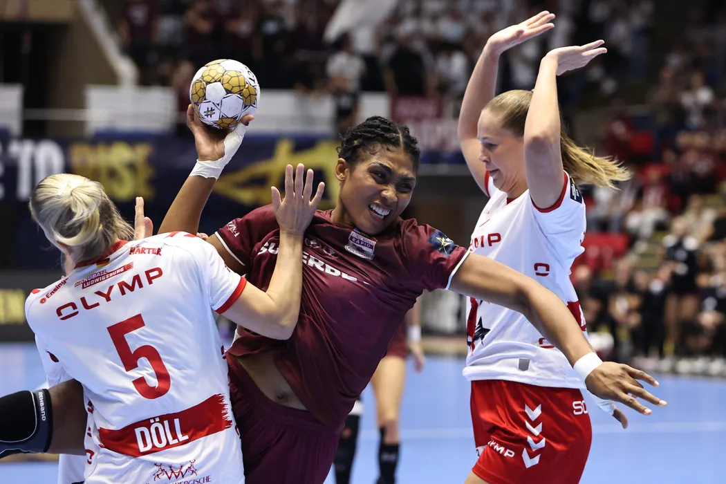 Albertina Da Cruz Kassoma în meciul de handbal feminin dintre Rapid București și HB Ludwigsburg, contând pentru Liga Campionilor, desfășurat în Sala Polivalentă Ioan Kunst Ghermănescu din București, dumincă 22 septembrie 2024. © FOTO: Gică FLUȘTER/SPORT PICTURES