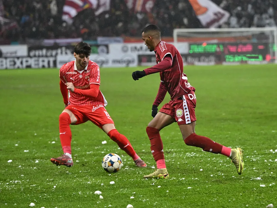 Adrian Mazilu si Talisson De Almeida in meciul de fotbal dintre Rapid Bucuresti si Dinamo Bucuresti, din cadrul Superligii Superbet, desfasurat pe Arena Nationala din Bucuresti, sambata 21 februarie 2026. © FOTO:Razvan Pasarica/SPORT PICTURES