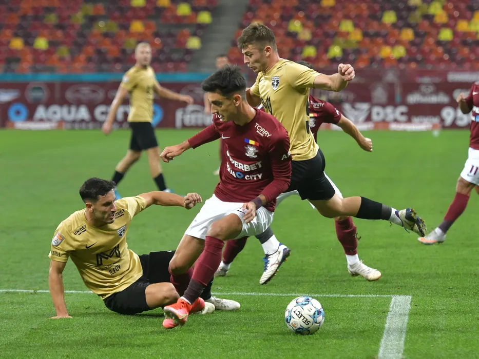 Ricardo Jose Veiga Varzim Miranda, Albert Tivadar Stahl si Cristian Ionut Costin in meciul de fotbal dintre Rapid Bucuresti si FC Voluntari, contand pentru Liga 1 Casa Pariurilor, desfasurat pe Arena Nationala din Bucuresti, vineri 24 septembrie 2021. © FOTO:Razvan Pasarica/SPORT PICTURES