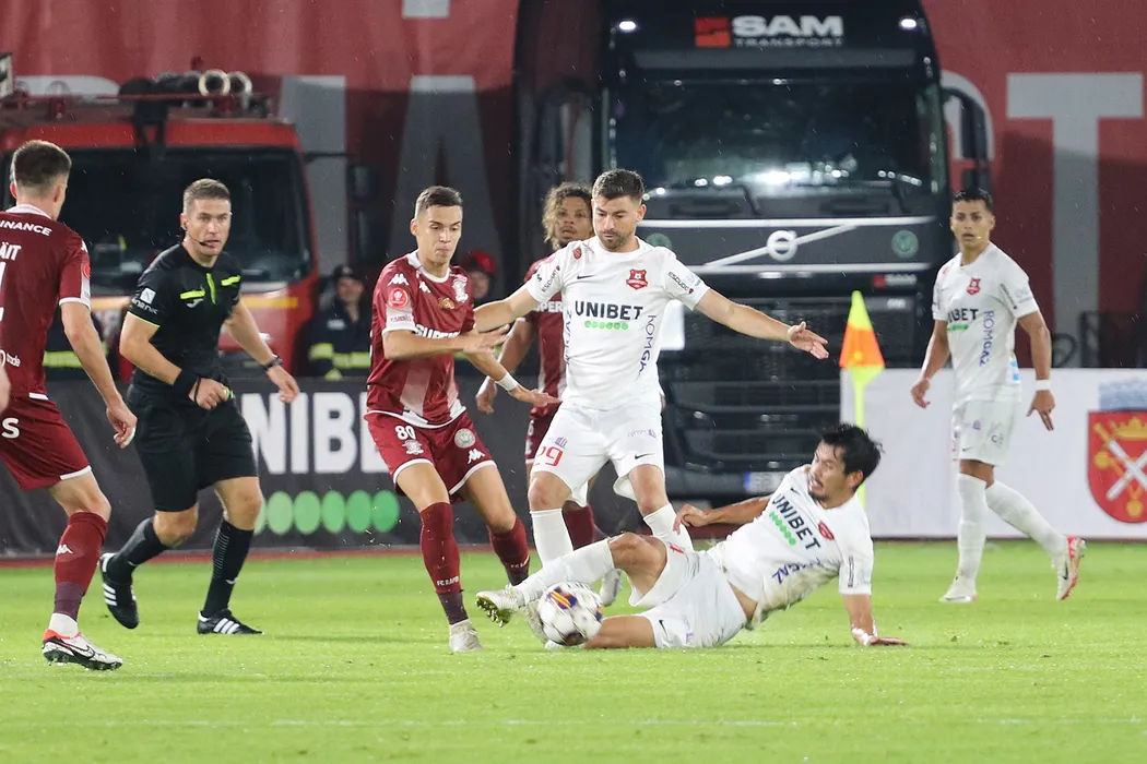 Meciul de fotbal dintre AFC HERMANNSTADT SIBIU si FC RAPID 1923 BUCURESTI, contand pentru Superliga Superbet, desfasurat pe Stadionul Municipal din Sibiu, duminica 01 octombrie 2023. © FOTO: Valentin MACREA/SPORT PICTURES