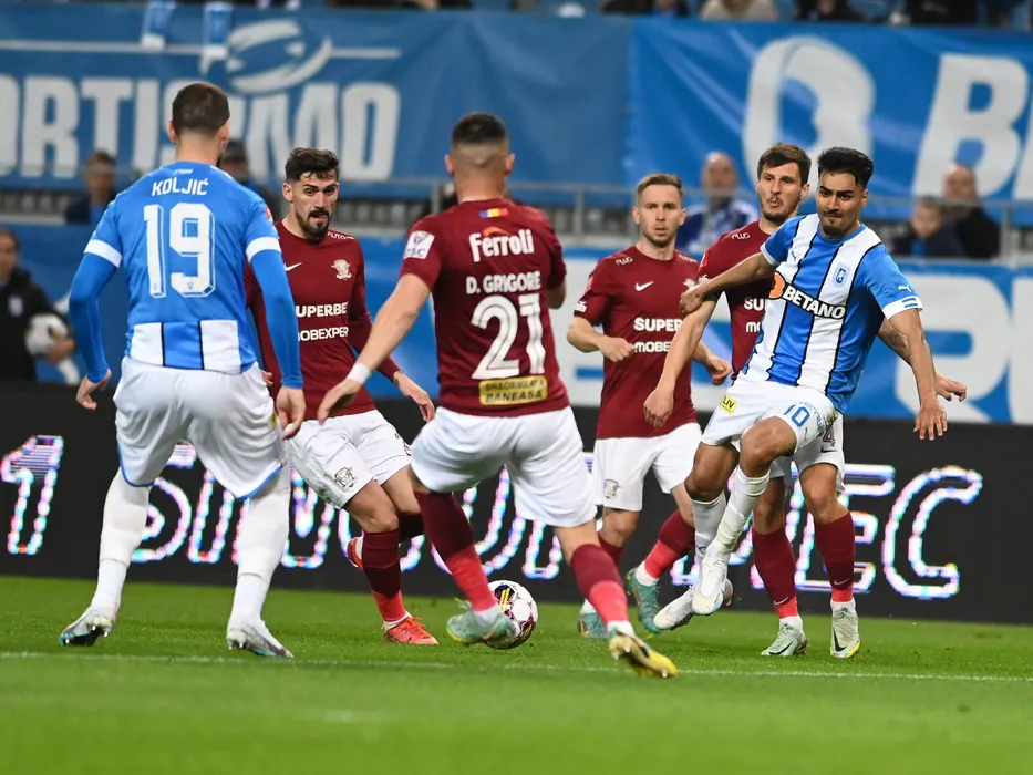 Alexandru Cristian Albu, Phillipe Razvan Onea, Ljuban Crepulja si Stefan Baiaram in meciul de fotbal dintre Universitatea Craiova si Rapid Bucuresti, contand pentru Play-off-ul Superligii Superbet, desfasurat pe Stadionul Ion Oblemenco din Craiova, duminica 16 aprilie 2023. © FOTO:Razvan Pasarica/SPORT PICTURES