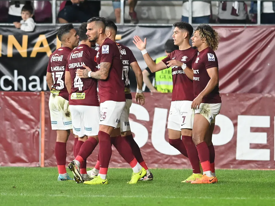 Antonio Valentin Sefer se bucura dupa un gol marcat alaturi de Morais Junior Iraneuton Sousa, Cristian Ignat si Jayson Jordan Julien Romain Papeau in meciul de fotbal dintre Rapid Bucuresti si CS Mioveni, contand pentru Superliga Superbet, desfasurat pe Stadionul Rapid Giulesti din Bucuresti, sambata 17 septembrie 2022. © FOTO:Razvan Pasarica/SPORT PICTURES