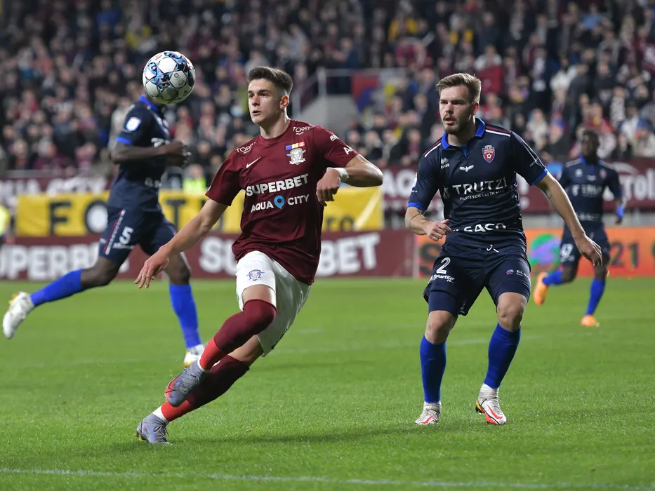 Rares Andrei Ilie si Denis Gratian Harut in meciul de fotbal dintre Rapid Bucuresti si FC Botosani, contand pentru Play-out-ul Ligii 1 Casa Pariurilor, desfasurat pe Stadionul Rapid Giulesti din Bucuresti, sambata 2 aprilie 2022. © FOTO:Razvan Pasarica/SPORT PICTURES