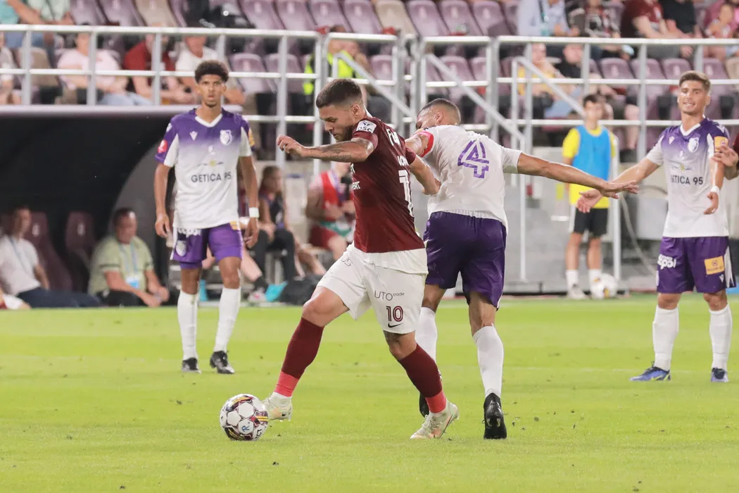 Alexandru Ionita si Cesar Daniel Meza Colli in meciul de fotbal dintre Rapid Bucuresti si FC Arges, contand pentru Superliga Superbet, desfasurat pe Stadionul Rapid Giulesti din Bucuresti, sambata 6 august 2022. © FOTO:Razvan Pasarica/SPORT PICTURES