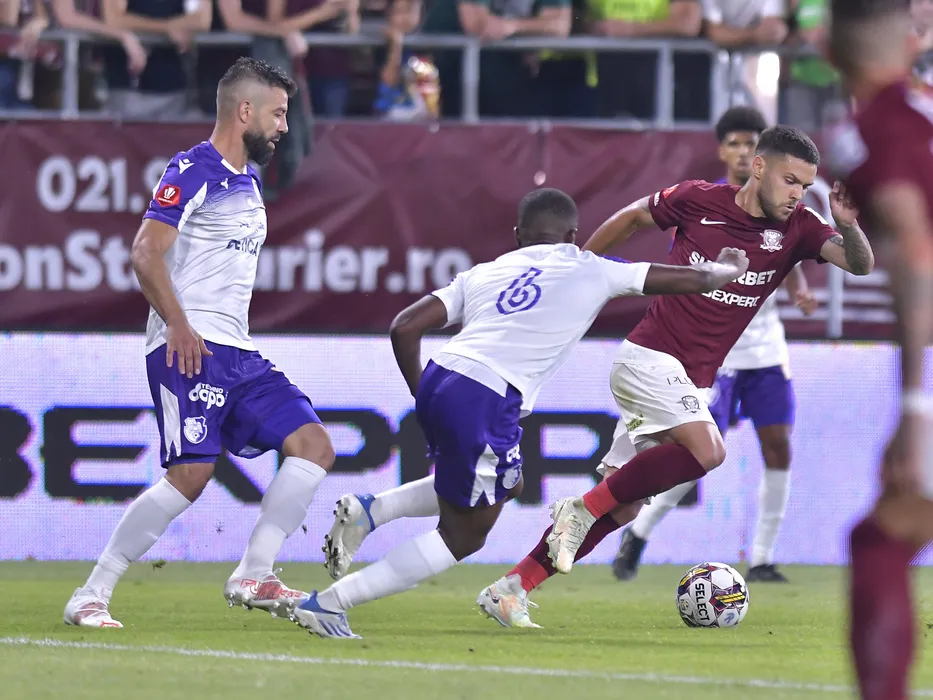 Marius Marcel Constantin si Alexandru Ionita in meciul de fotbal dintre Rapid Bucuresti si FC Arges, contand pentru Superliga Superbet, desfasurat pe Stadionul Rapid Giulesti din Bucuresti, sambata 6 august 2022. © FOTO:Razvan Pasarica/SPORT PICTURES
