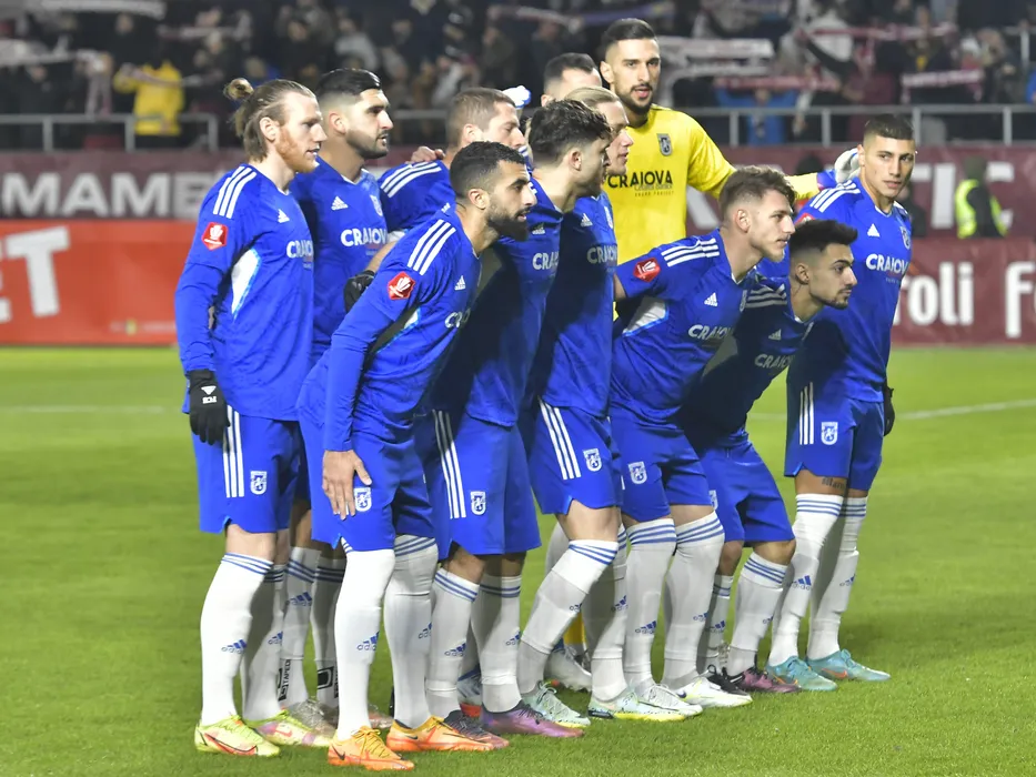 Fotbalistii craioveni la o fotografie de grup realizata inaintea meciului de fotbal dintre Rapid Bucuresti si FC U Craiova, contand pentru Superliga Superbet, desfasurat pe Stadionul Rapid Giulesti din Bucuresti, vineri 10 februarie 2023. © FOTO:Razvan Pasarica/SPORT PICTURES