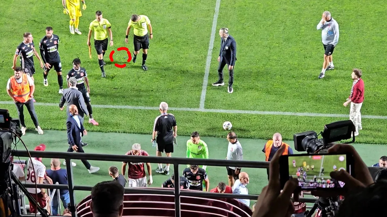 Rapid, la un pas de un nou „Caz Bricheta”! Obiectul aruncat de fanii giuleșteni a trecut la câțiva centimetri de capul arbitrului Cojocaru