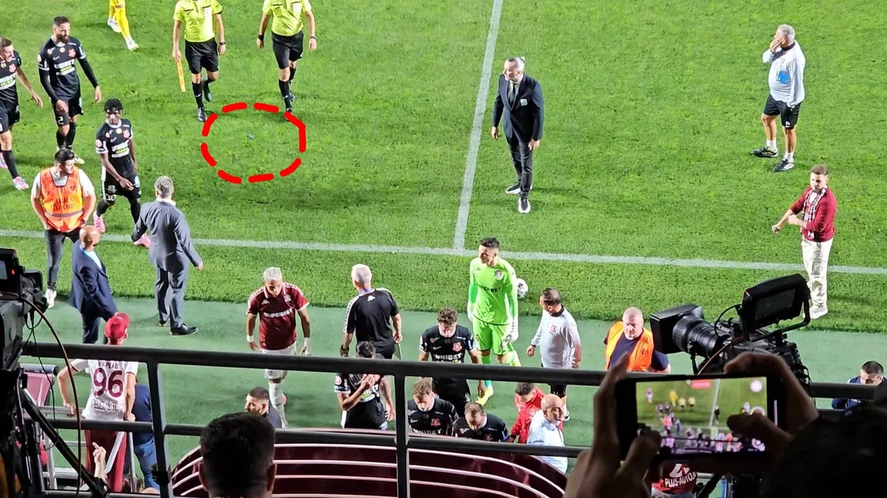 Rapid, la un pas de un nou „Caz Bricheta”! Obiectul aruncat de fanii giuleșteni a trecut la câțiva centimetri de capul arbitrului Cojocaru