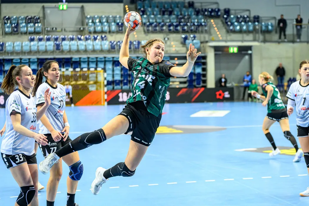 Handball Frauen EHF European League EL Women Gruppenphase Saison 2025/2026 VfL Oldenburg vs. HC Lokomotiva Zagreb 10.01.2026 Steffen, Marie 14, VfL Oldenburg im Sprung, beim Wurf *** Handball Women EHF European League EL Women Group Phase Season 2025 2026 VfL Oldenburg vs HC Lokomotiva Zagreb 10 01 2026 Steffen, Marie 14, VfL Oldenburg jumping, throwing the ball,Image: 1065102157, License: Rights-managed, Restrictions: , Model Release: no, Credit line: Dennis Leskys / imago sportfotodienst / Profimedia