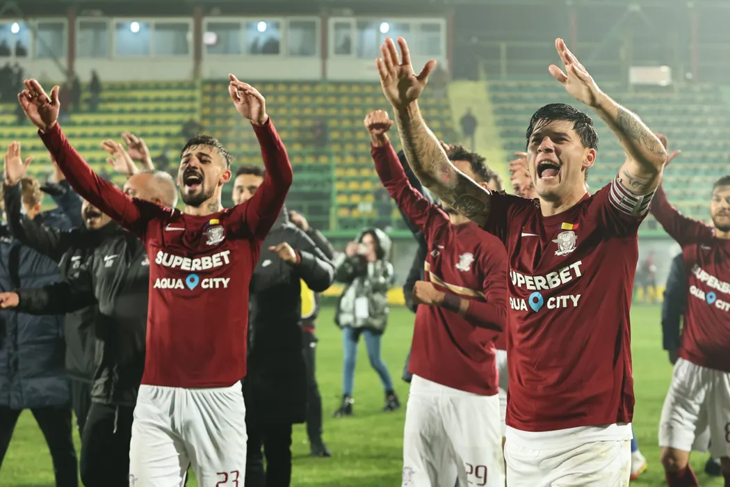 Alexandru Albu (S) si Cristian Sapunaru (D), de la Rapid, reactioneaza la finalul meciului de fotbal contra echipei CFR Cluj din etapa a XII-a a Ligii 1, disputat pe stadionul Orasenesc din Mioveni, duminica, 17 octombrie 2021. GEORGE FILIP / MEDIAFAX FOTO
