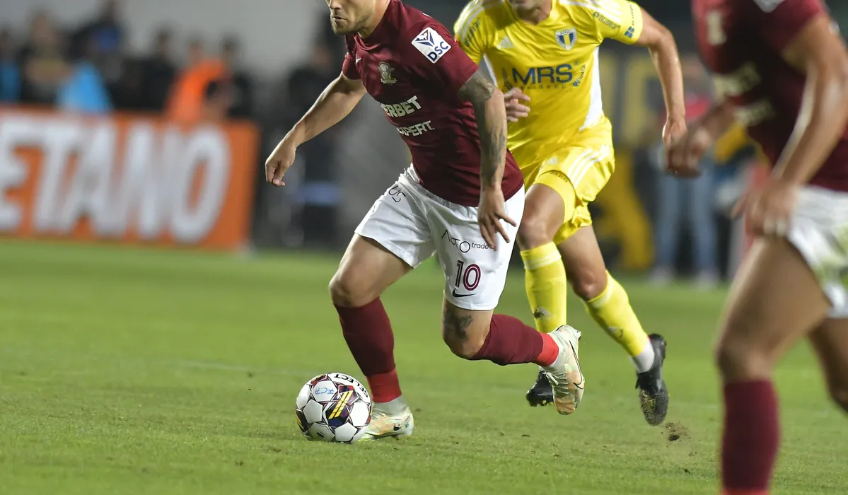 Alexandru Ionita si Eugeniu Cebotaru in meciul de fotbal dintre Petrolul Ploiesti si Rapid Bucuresti, contand pentru Superliga Superbet, desfasurat pe Stadionul Ilie Oana din Ploiesti, sambata 13 august 2022. © FOTO:Razvan Pasarica/SPORT PICTURES