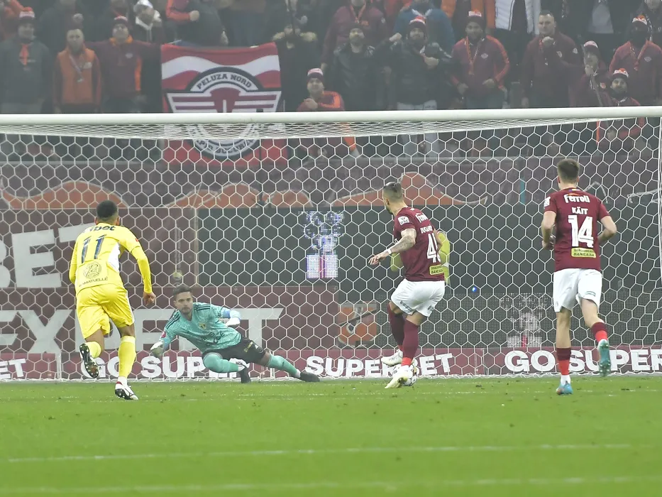 Marko Dugandzic marcheaza un gol din penalty in poarta lui Andreas Leitner in meciul de fotbal dintre Rapid Bucuresti si Petrolul Ploiesti, contand pentru Superliga Superbet, desfasurat pe Arena Nationala din Bucuresti, miercuri 14 decembrie 2022. © FOTO:Razvan Pasarica/SPORT PICTURES
