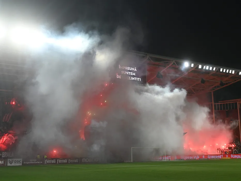 Torte si fumigene in peluza rapidista la meciul de fotbal dintre Rapid Bucuresti si FCSB, contand pentru Play-off-ul Superligii Superbet, desfasurat pe Stadionul Rapid Giulesti din Bucuresti, duminica 23 aprilie 2023. © FOTO:Razvan Pasarica/SPORT PICTURES