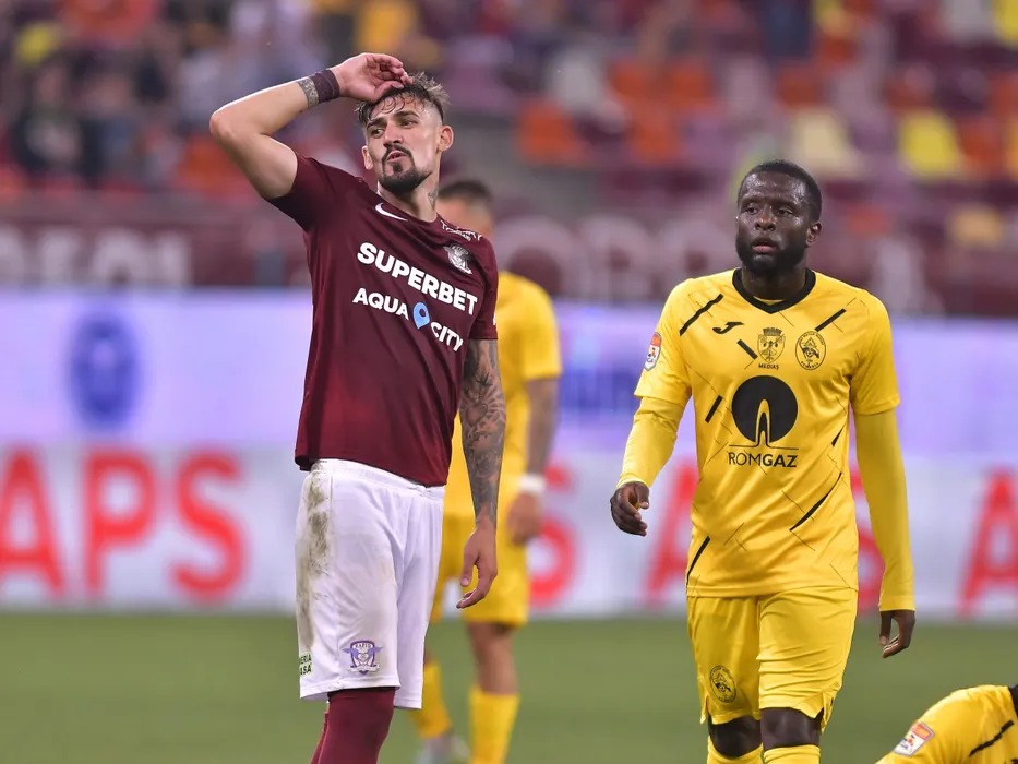 Alexandru Cristian Albu si Nasser Chamed in meciul de fotbal dintre Rapid Bucuresti si Gaz Metan Medias, contand pentru Liga 1 Casa Pariurilor, desfasurat pe Arena Nationala din Bucuresti, vineri 17 septembrie 2021. © FOTO:Razvan Pasarica/SPORT PICTURES
