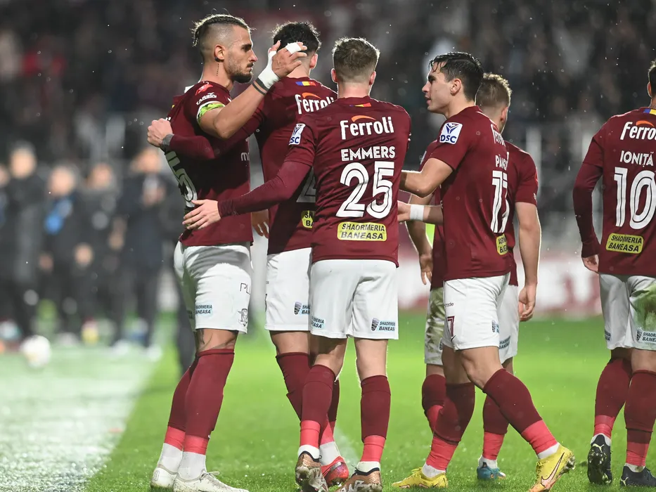 Marko Dugandzic se bucura alaturi de fotbalistii rapidisti printre care Stefan Calin Panoiu dupa un gol marcat in meciul de fotbal dintre Rapid Bucuresti si Sepsi OSK Sfantu Gheorghe, contand pentru Superliga Superbet, desfasurat pe Stadionul Rapid Giulesti din Bucuresti, vineri 20 ianuarie 2023. © FOTO:Razvan Pasarica/SPORT PICTURES