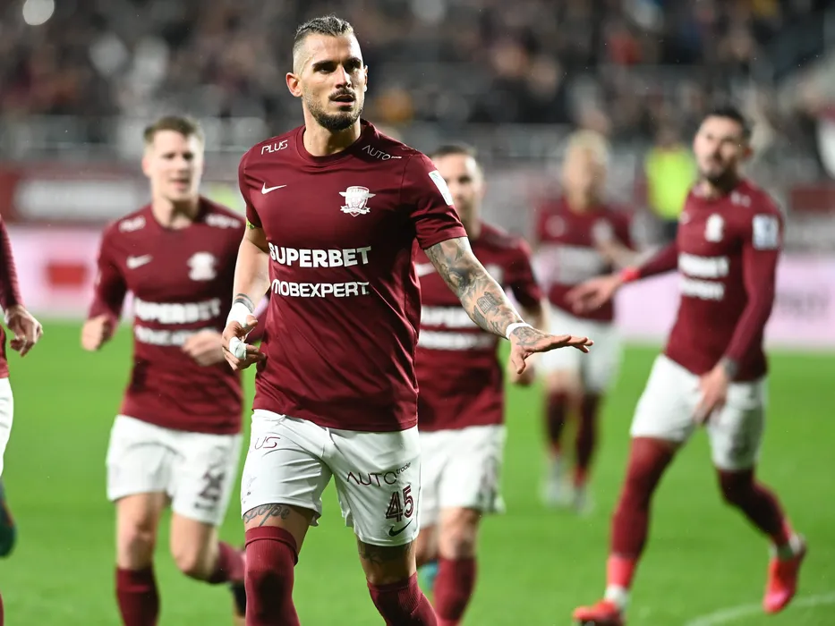 Marko Dugandzic se bucura dupa un gol marcat in meciul de fotbal dintre Rapid Bucuresti si Sepsi OSK Sfantu Gheorghe, contand pentru Superliga Superbet, desfasurat pe Stadionul Rapid Giulesti din Bucuresti, vineri 20 ianuarie 2023. © FOTO:Razvan Pasarica/SPORT PICTURES