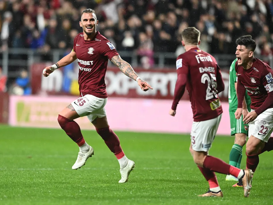 Marko Dugandzic se bucura dupa un gol marcat alaturi de Cristian Ionut Sapunaru in meciul de fotbal dintre Rapid Bucuresti si Sepsi OSK Sfantu Gheorghe, contand pentru Superliga Superbet, desfasurat pe Stadionul Rapid Giulesti din Bucuresti, vineri 20 ianuarie 2023. © FOTO:Razvan Pasarica/SPORT PICTURES